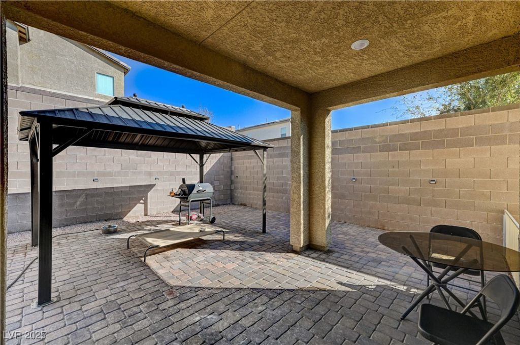 This stunning residence boasts numerous upgrades and features , including a full bathroom and a bedroom located in the main floor.Enjoy the luxury of new flooring through downstairs enhancing the home's modern appeal. Step outside to discover a covered patio and an added gazebo , perfect for relaxing entertainment an a already added gas connection for your perfect BBQ grill.Nestled in a beautiful gated community, this home offers peace of mind and sense of security. Conveniently located just 15 minutes for the vibrant Las Vegas Strip. Plus, the property is equipped with solar panels, providing energy efficiency and lower utility bills. Lennar Home, Skyland Model. Don't miss your chance to own this remarkable home!