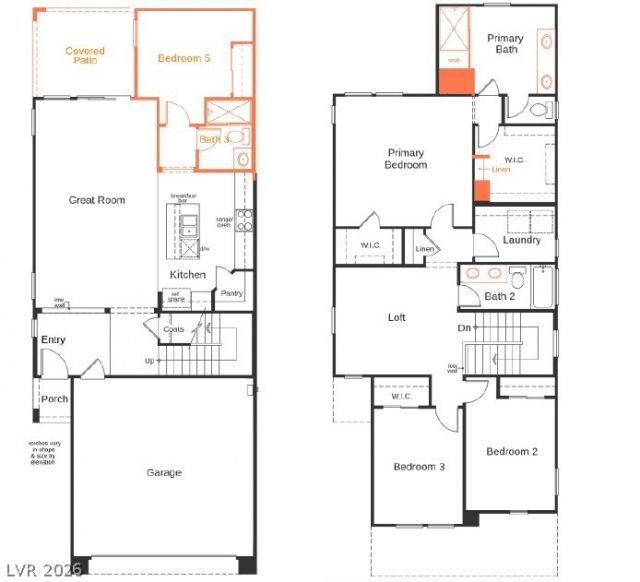 Two story home showcases open floor plan with 9ft first floor ceilings, Timberlake birch cabinets, 42 in upper cabinets and quartz countertops, large shower in primary bath and covered patio.