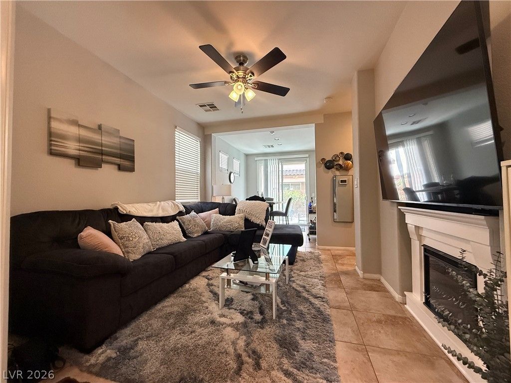 Beautifully maintained home within the Master Planned community of Mountain's Edge with a comfortable and functional layout. The spacious kitchen offers plenty of cabinet storage and flows nicely into the main living area featuring an electric fireplace. The home has been well cared for with recent updates including a new dishwasher, washer and dryer, ceiling fans, thermostat, and toilet. Upstairs you will find the primary suite with a walk in closet and a tub and shower combo, along with a guest bathroom with a similar setup. The backyard is cozy and easy to enjoy, making this a great move in ready home.